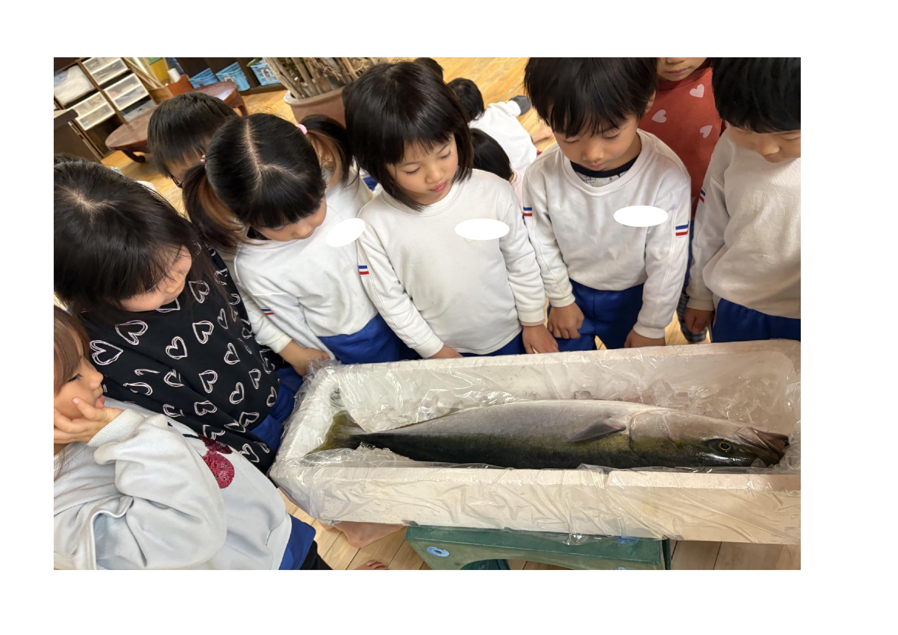 午後からは年中、年長組でブリの解体を見学しました。