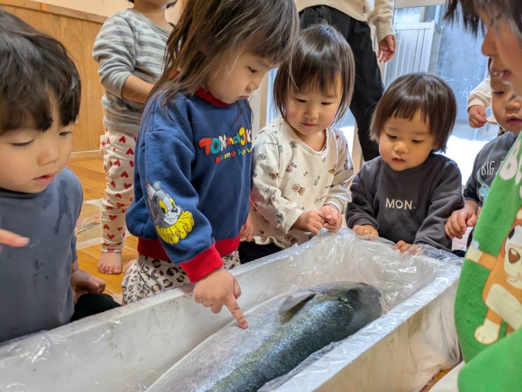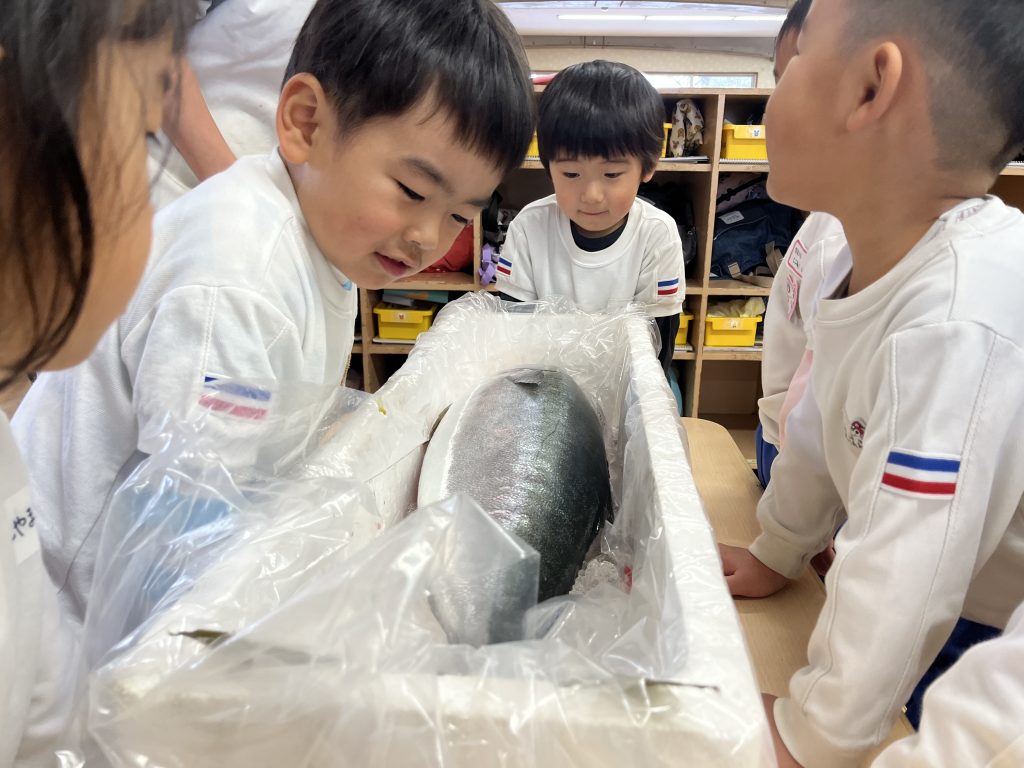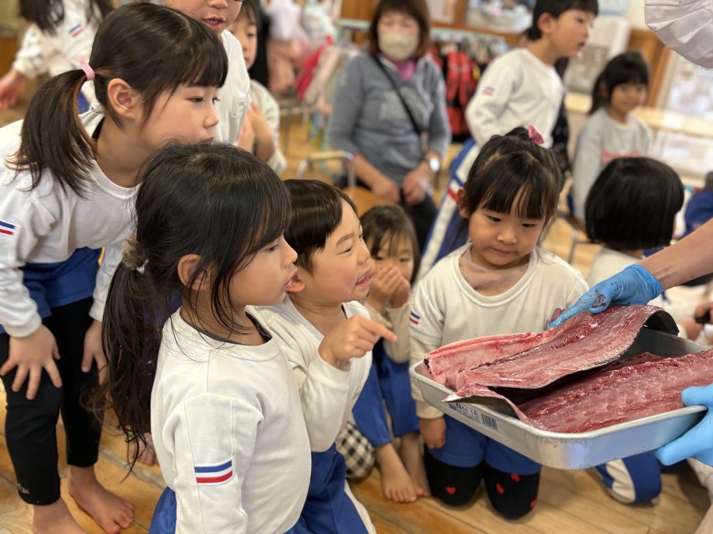 さっきまで大きな海で泳いでいた大きな魚が今、解体されるその瞬間は残酷な場面でもあります。しかし、私たちはその命をいただくことで、今日を元気に過ごせること、明日からも生きていけることが出来ます。いのちの保育はそのことをしっかり子ども達に伝えることができる場でもあります。