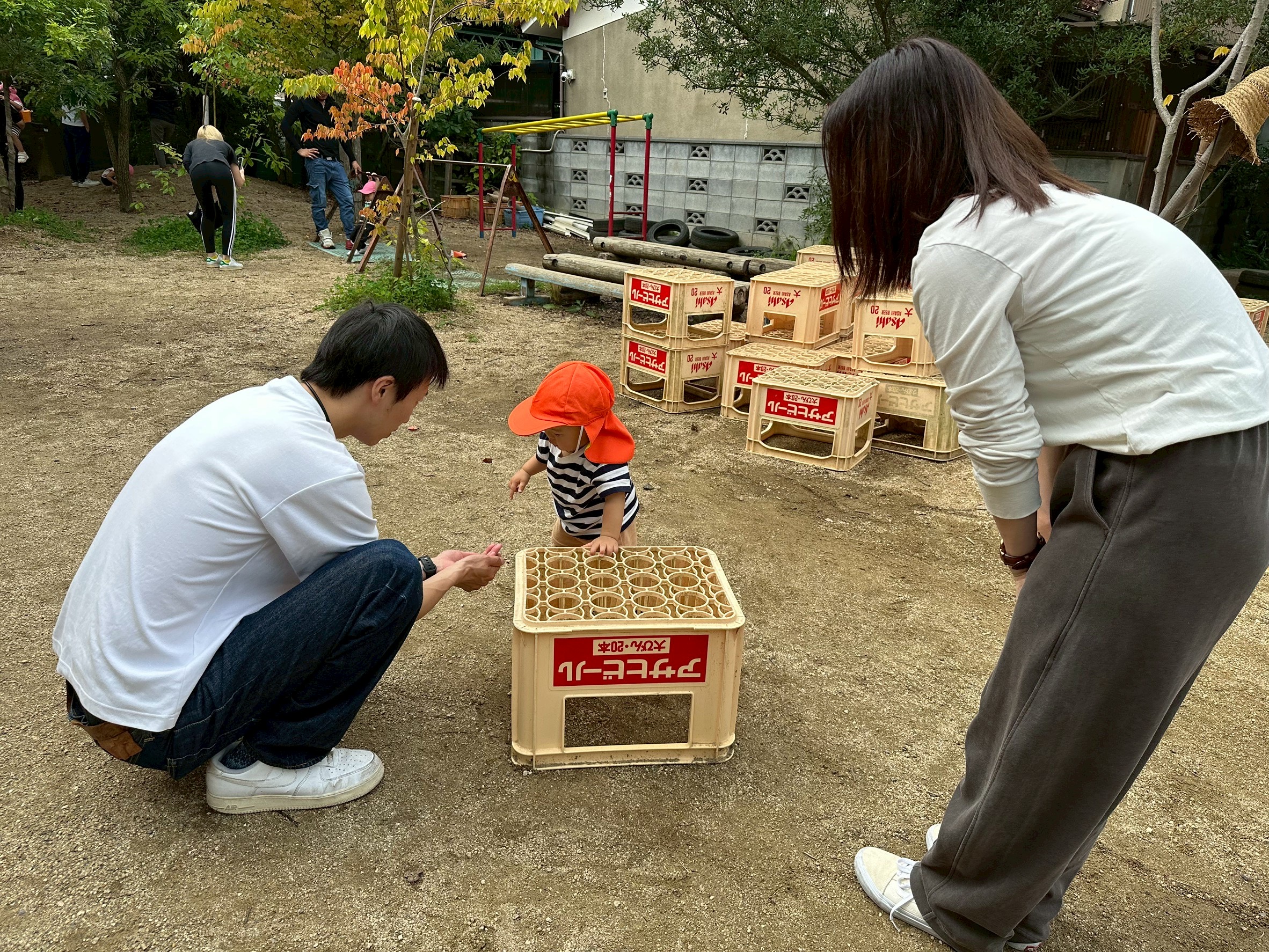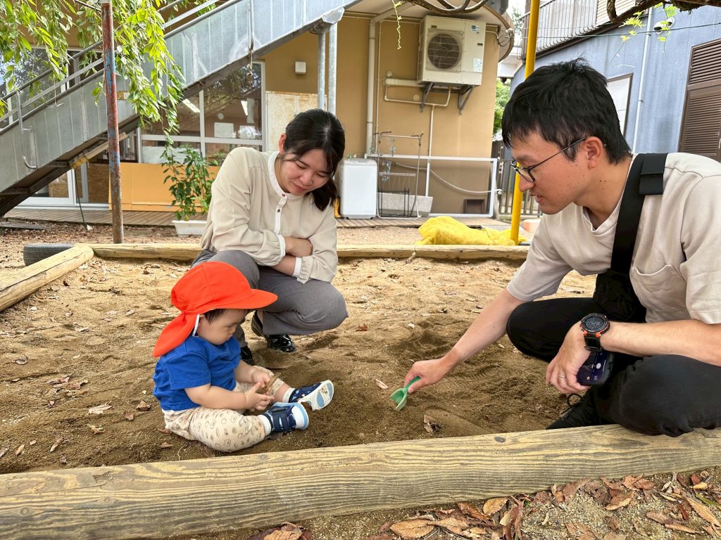 その後は、園庭にも遊びに行きお父さんお母さんと一緒に園庭内をお散歩したり、お砂場で遊んだり…と楽しい時間を過ごすことができました♪
