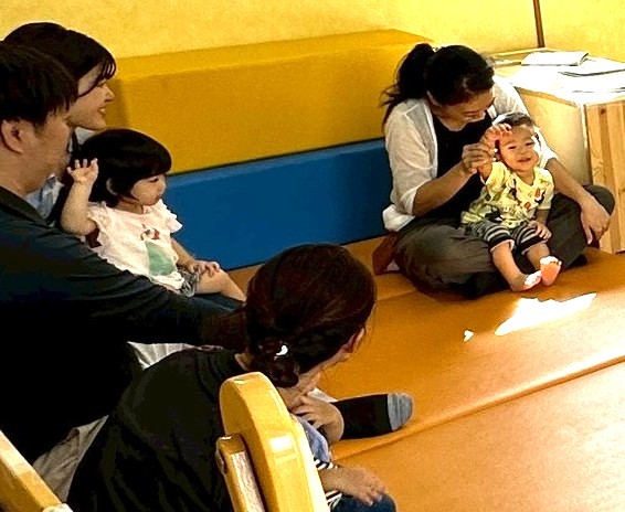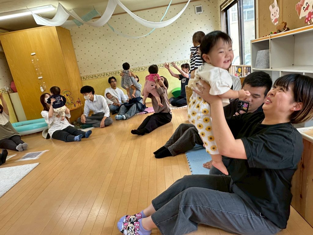 手遊びや触れ合い遊びもお父さんお母さんと一緒にしました。お家の方と一緒にするといつも以上にニコニコ笑顔の子ども達♪