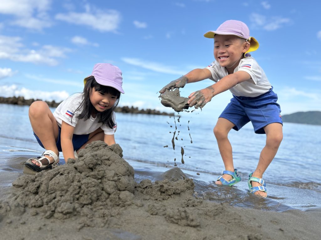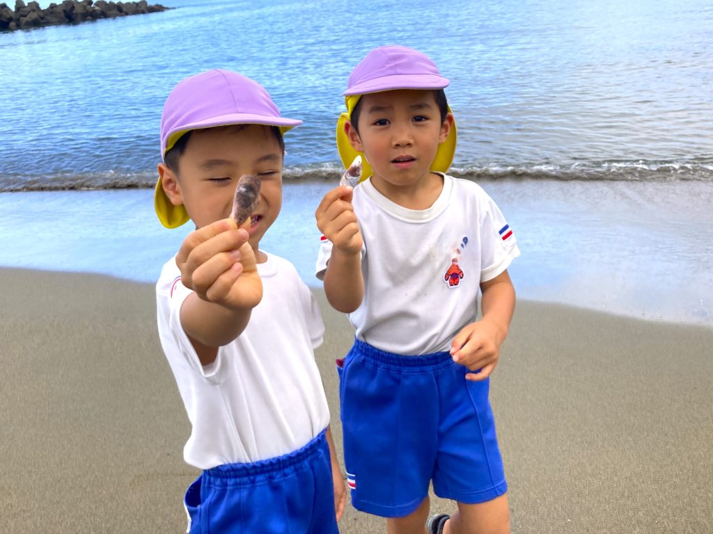 お腹も満たされ、次は海岸遊び。貝殻やシーグラス探し開始です!
