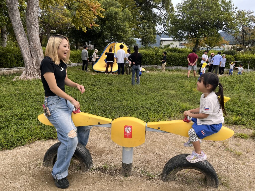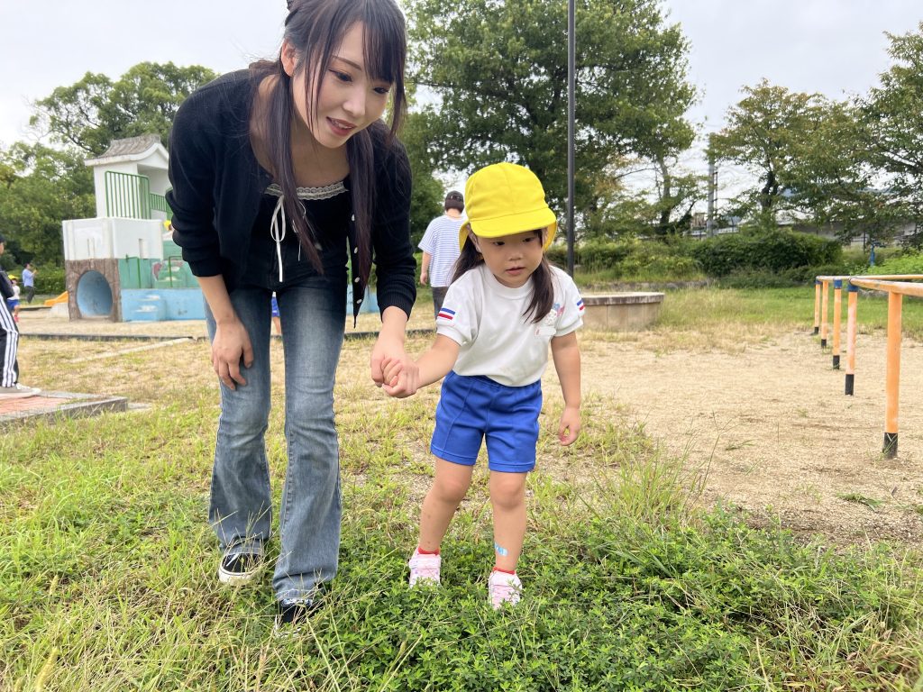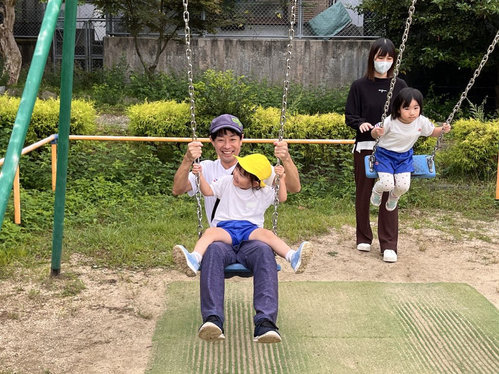 公園では、一緒にブランコや、虫探し、追いかけっこなど親子やお友達と一緒に楽しそうに遊ぶ姿が見られました。